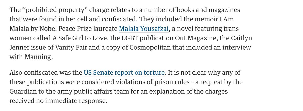 Prison holding Chelsea Manning deems Malala book, novel, magazines covering trans issues "prohibited items"