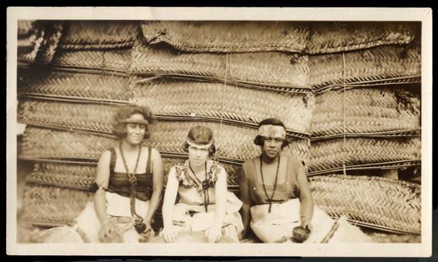 Margaret Mead at around age 25, in Samoa with two adolescent Samoans