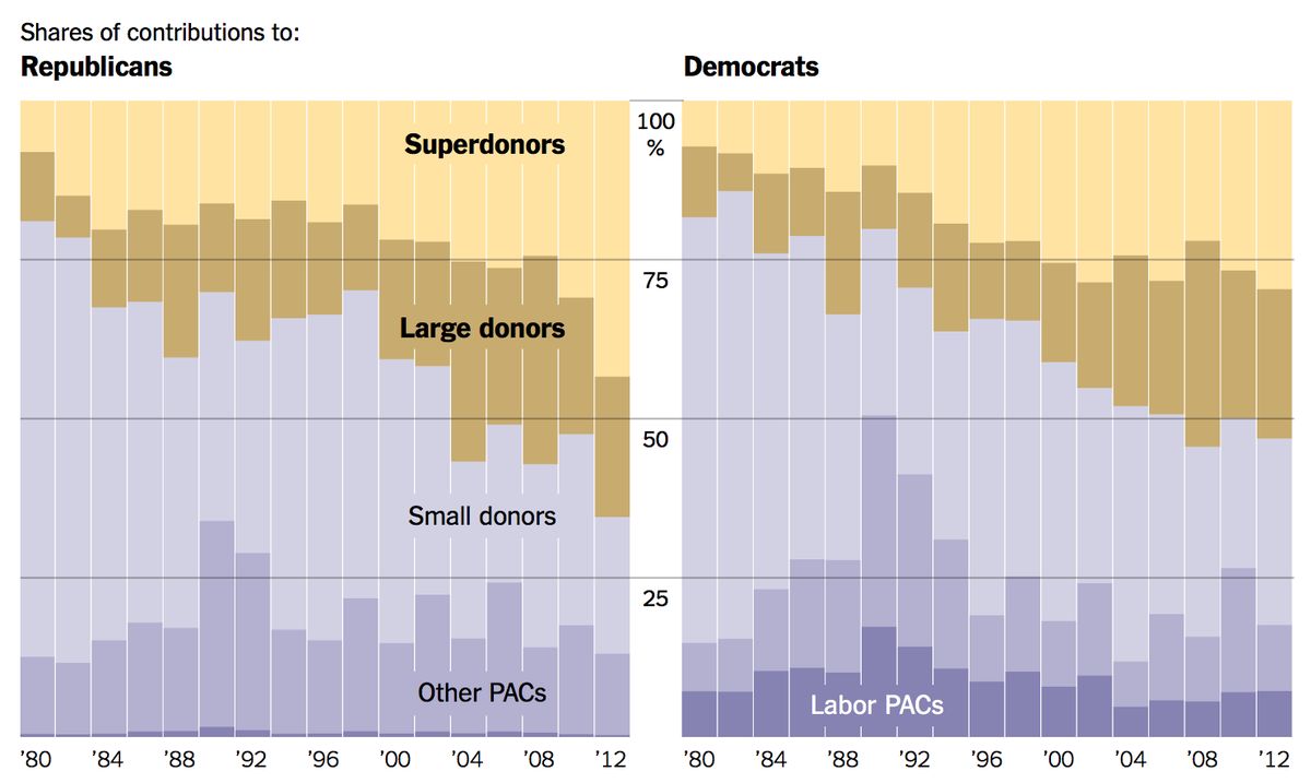 : Biggest donors provide more than 50% of money collected by both parties