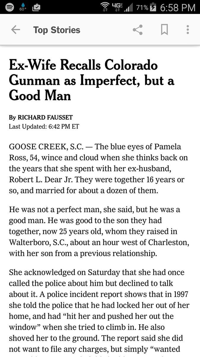 New York Times continues streak of humanizing white mass murderers. #PPShooting #RobertDear