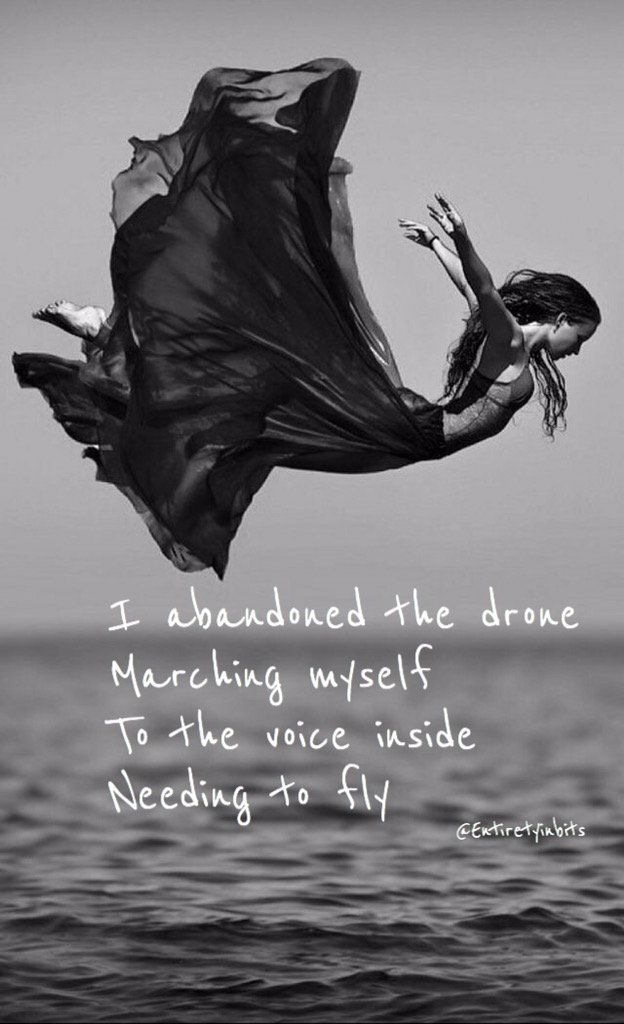 : I abandoned the drone Marching myself To the voice inside Needing to fly #thirteenwordstory