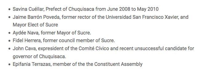 Among those found guilty in May 24, 2008 incident are these elites of Sucre, Bolivia