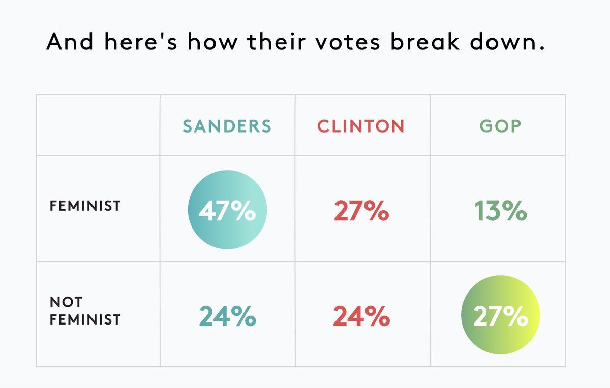 romps among feminists <35, ties w/ Clinton among nonfeminists.