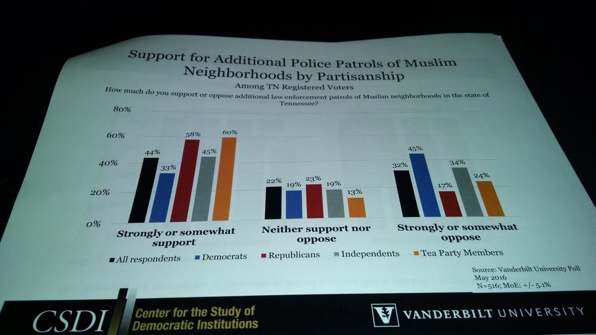 : VU poll: Fairly even support for increasing surveillance of Muslims in Tennessee.