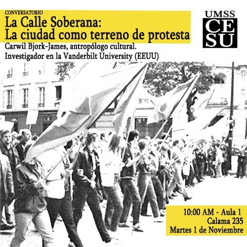 Estaré hablando sobre "“La Calle Soberana: La ciudad como terreno de protesta,” MAÑANA 10am en CESU, Cbba