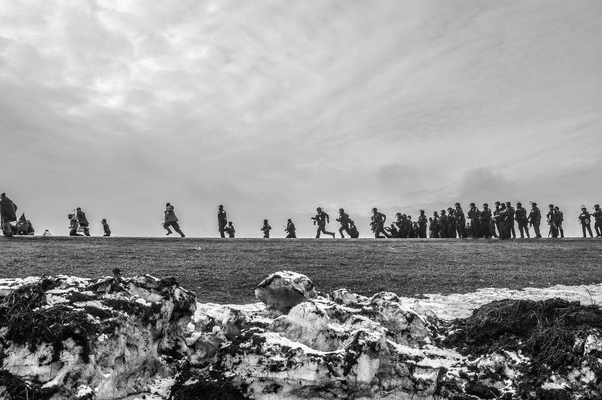 : This is a shot of POLICE CHASING REPORTERS yesterday. Via Rob Wilson. #NoDAPL