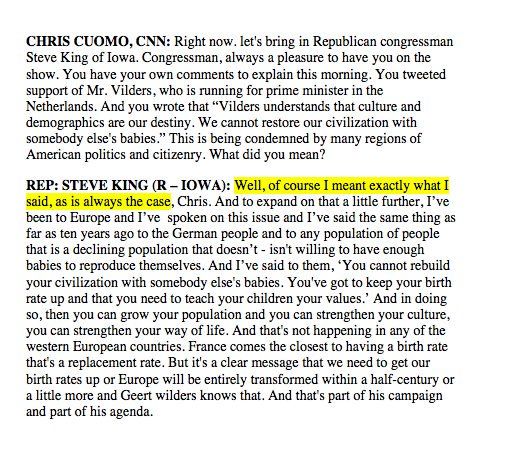 : Rep. Steve King stood by his explicitly white nationalist comments on CNN today