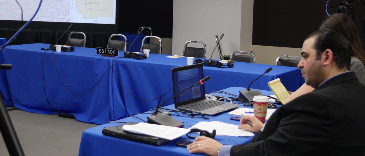 Empty chairs for the United States government at the Inter-American Commission on Human Rights hearing on Trump EOs #IACHR