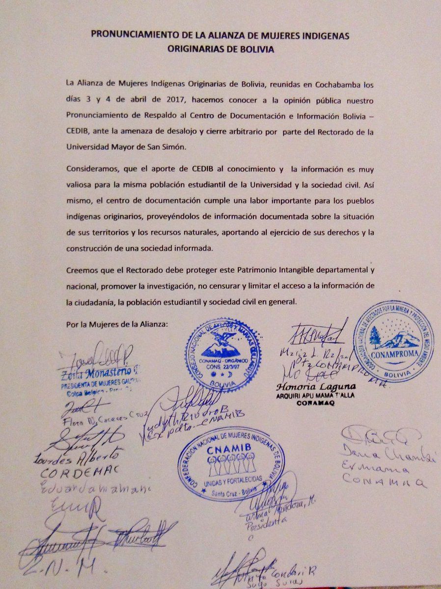 : Gracias a las Mujeres Indígenas, primeras en pronunciarse en apoyo al CEDIB! #AguanteCEDIB