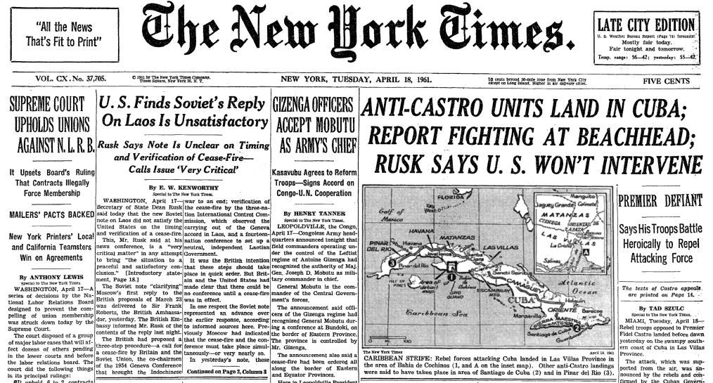 : The front page #OTD in 1961. The Bay of Pigs invasion begins. #nytimes