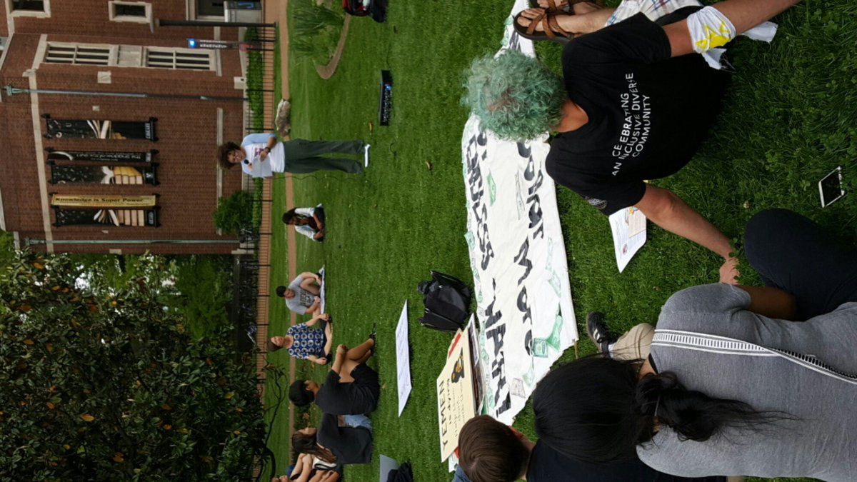 45+ rally against warfare at Vanderbilt University, in response to US bombings of Syria, Afghanistan, Yemen #vandygram