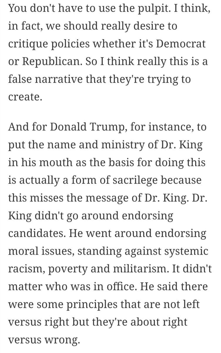 "For Trump to out the name and ministry of Martin Luther King in his mouth [to do this] is sacrilege."