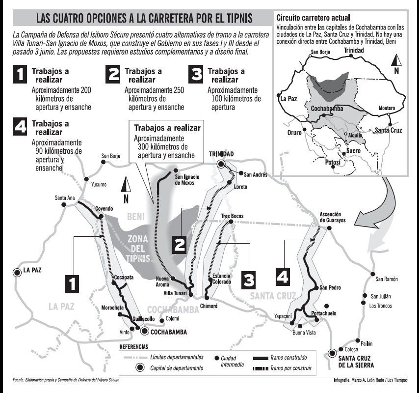 If the government was concerned about getting #TIPNIS residents out for emergency medical care, it would put road east of park.