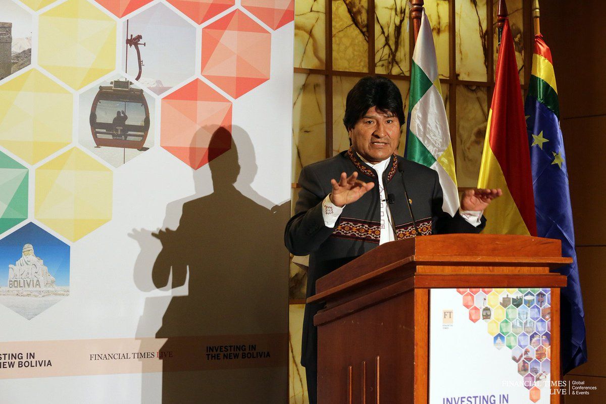 Evo Morales 2016 Speaking at Financial Times' "Investing in the New Bolivia" only open to corporate executives and investiment managers