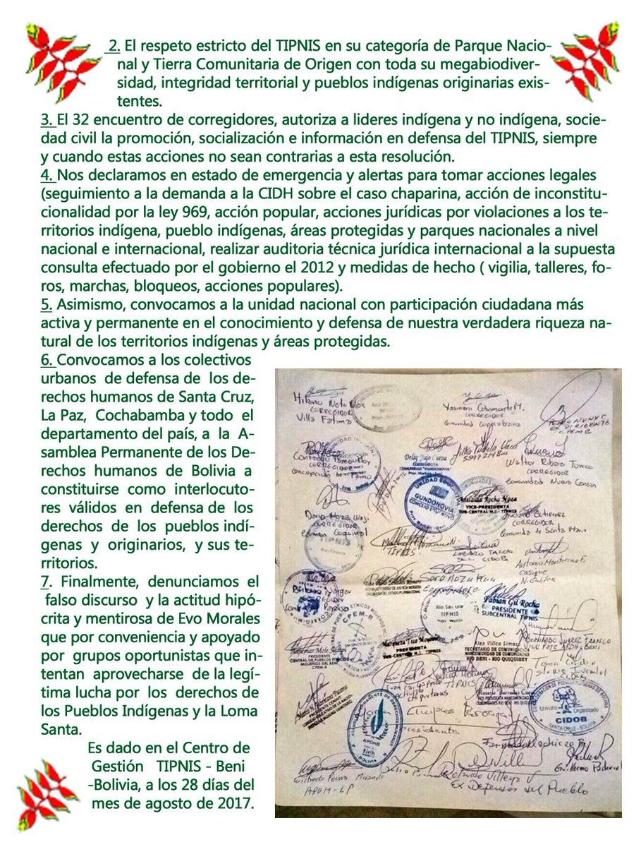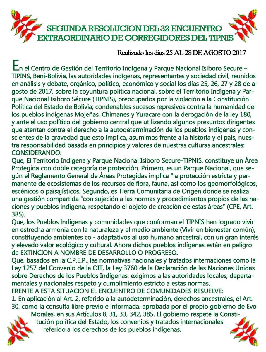 : LA RESOLUCIÓN DE LOS DIRIGENTES ORGÁNICOS QUE DEFIENDEN SU TERRITORIO. #TIPNIS #TipnisEnEmergencia