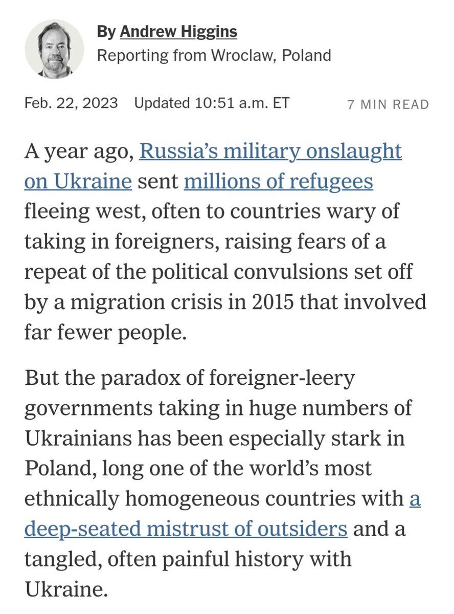 Andrew Higgins and the @nytimes avoid the obvious conclusion: Hostility to Syrian, Afghan and Middle East Immigrants was Racist, as Embrace of Ukrainians Shows. "Paradox," ha! #OccamsRazor #Media #Race #WhiteInnocence