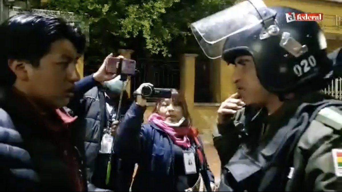 Striking video from 2019 of Marco Pumari negotiating custody of the Departmental Electoral Tribunal from the police. (at 1:45:00) followed by the Police commander Williams Villa explaining his de-escalation "so there are no bajas [dead or wounded]." facebook.com/erwin.valda/videos/2505974576165802/